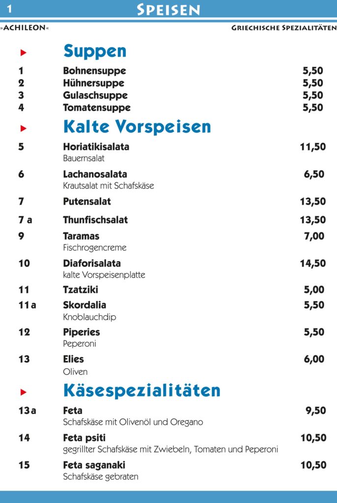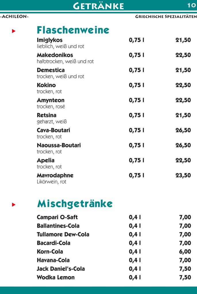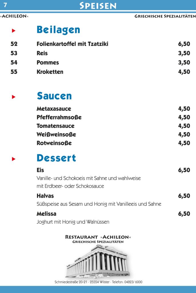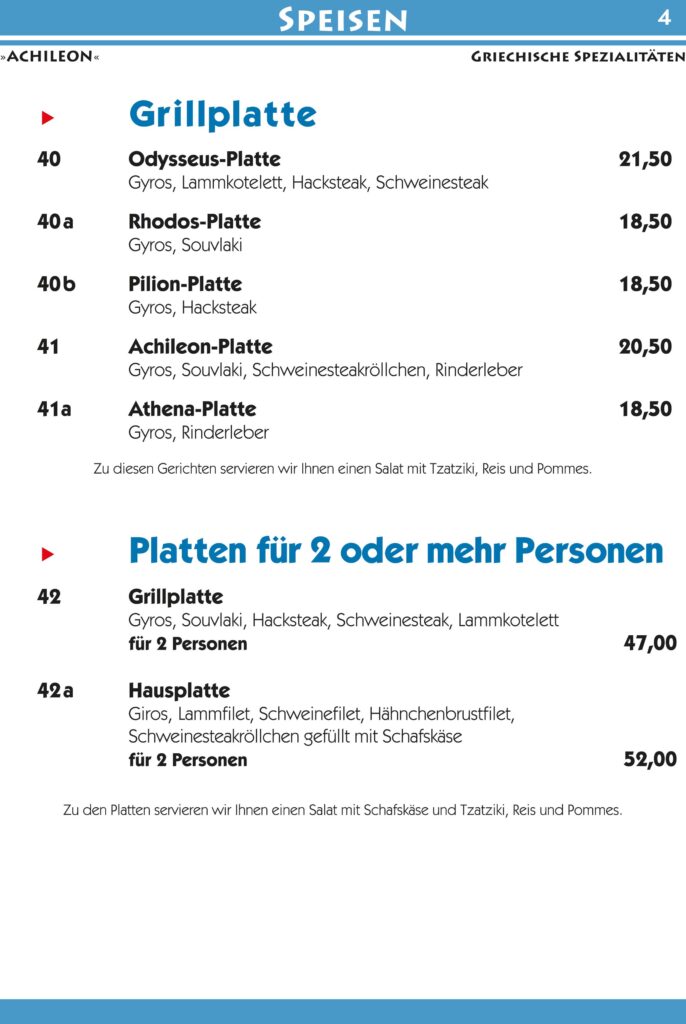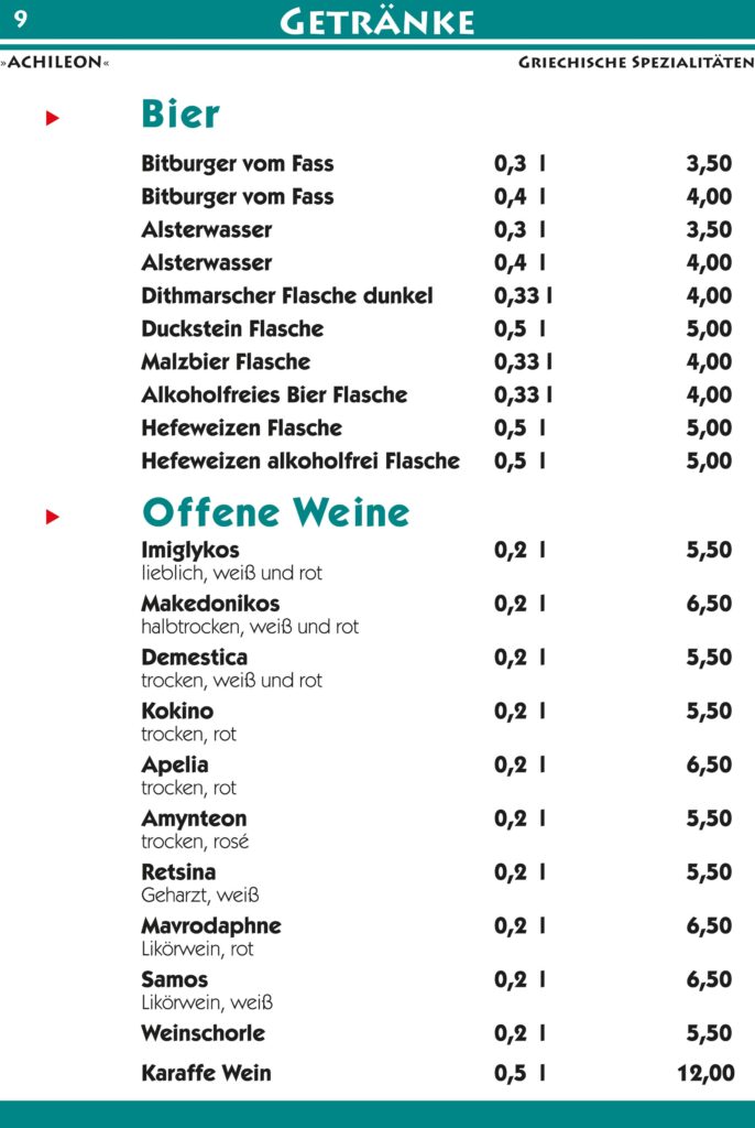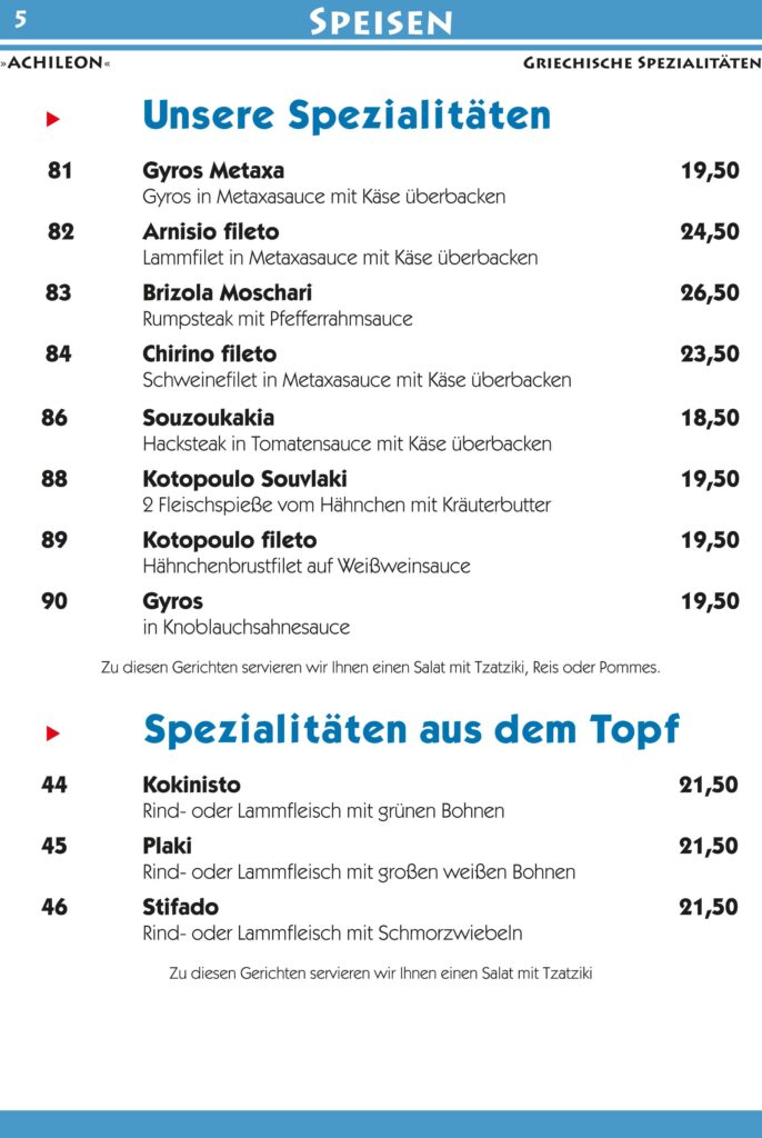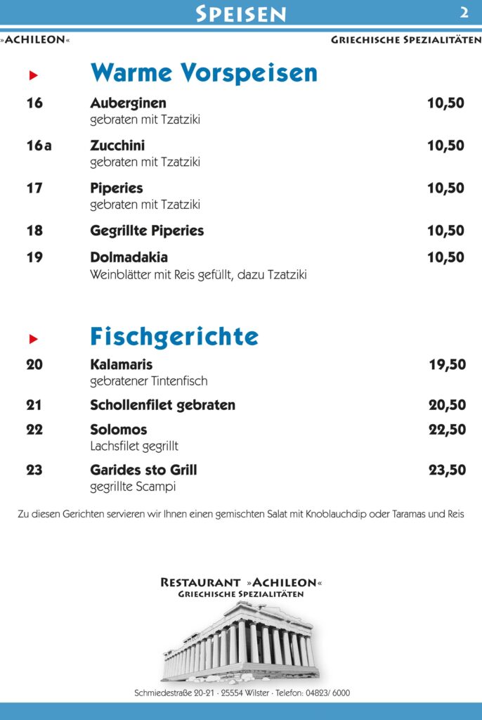 Das traditionelle griechische Restaurant in Wilster möchte Sie hier im Achileon – Restaurant begrüßen und Ihnen etwas von der griechischen Kultur und der Lebensfreude mitgeben. Unsere originellen und mediterran zubereiteten Speisen kochen wir täglich mit frischen Produkten nach Familienrezepten. Dazu empfehlen wir Ihnen gerne einen guten griechischen Rot- oder Weißwein.